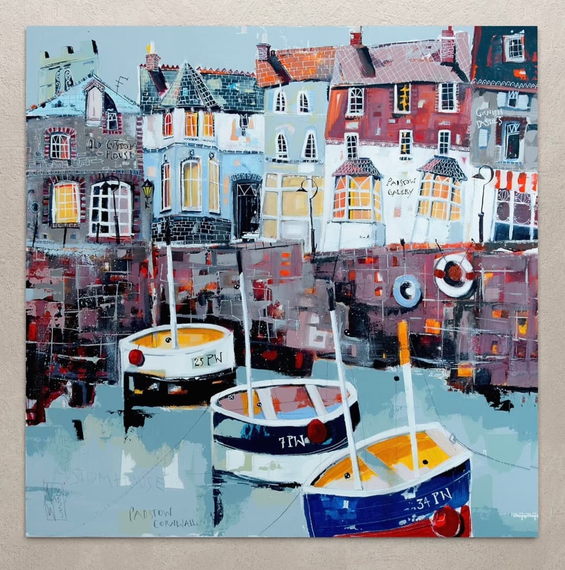 Ein Stück Cornwall für Ihr Zuhause: Padstow Harbour zeigt die bunten Häuser und Boote des kleinen Fischerhafens in leuchtenden Farben. Das Werk fängt die besondere Stimmung dieses Ortes ein – verspielt, voller Leben und mit einem Hauch nostalgischer Ruhe.